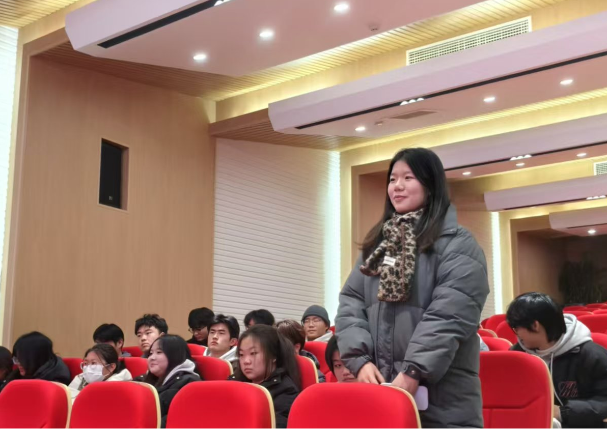 党课最后,在提问互动环节,孙丽娜与师生党员深入交流。问题涵盖对党的基本知识的理解、马克思主义经典理论以及党徽党旗使用规范等内容。在场学生踊跃发言,分享学习感悟和心得体会。一名学生入党积极分子表示:“观看陈望道的故事让我深刻认识到中国共产党人追求信仰的力量,为中国人民谋幸福,为中华民族谋复兴的甜,不仅来源于物质上的满足,更多的是精神上的充实和成就,我将在以这种精神为指引,努力学习为国家的发展贡献自己的力量。”