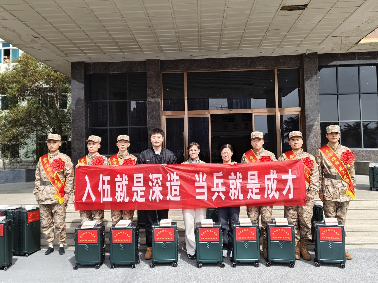 2025年3月14日,我校开封校区2025年春季入伍学生役前教育暨新兵入伍欢送会,于开封市民兵训练基地盛大举行。beat365亚洲版官网党总支书记孙丽娜、学院入伍专员张智鹏、22级辅导员代表师晓参与本次欢送会,为学院6名即将投身军营的学子送行。活动通过庄严仪式、特色赠礼等环节,彰显专业育人特色与国防教育深度融合的实践成果。